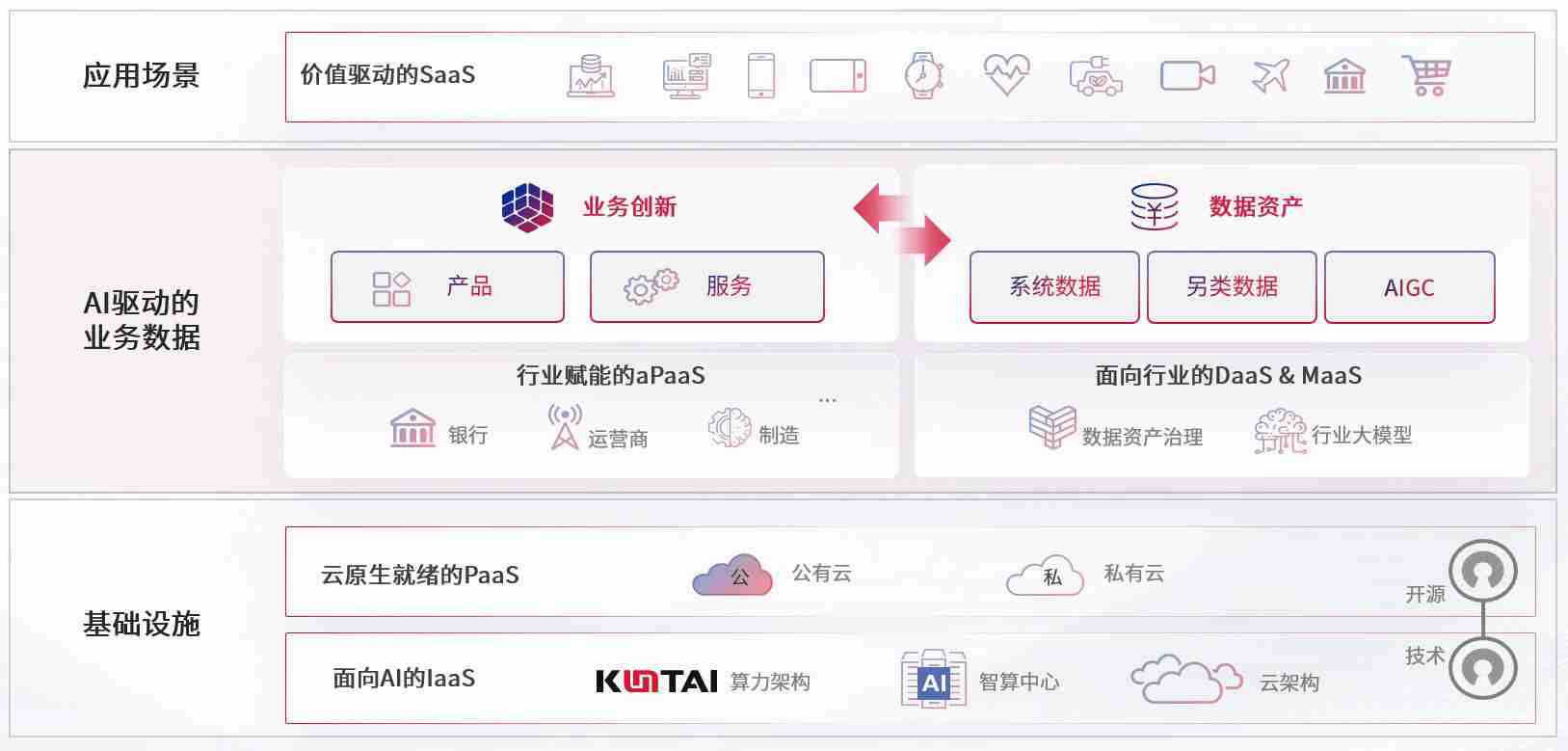 数字时代,,围绕企业数字化转型的关键要素,,,,k8.com数码开创性的提出数云融合战略和技术体系框架,,,,着力在云原生、、、、数字原生、、、AI原生和信创产业上架构产品和服务能力,,,为处在不同数字化转型阶段的快消零售、、汽车、、、、金融、、、、医疗、、、政企、、教育、、、运营商等行业客户提供泛在的敏捷IT能力和融合的数据驱动能力,,,构建跨界融合创新的数字业务场景和新业务模式,,助力企业级客户建立面向未来的核心能力和竞争优势,,,,全面推动社会的数字化、、、、智能化转型升级。。。。